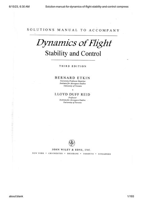 Read DYNAMICS OF FLIGHT STABILITY AND CONTROL SOLUTION MANUAL iBooks Open Library